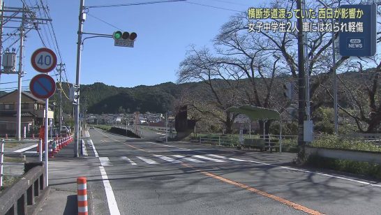 浜松市天竜区で横断歩道を渡っていた女子中学生2人が乗用車にはねられけが