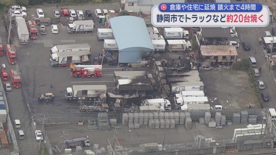 静岡市清水区の運送会社駐車場でトラックなどおよそ20台が燃える火事 倉庫や住宅に...