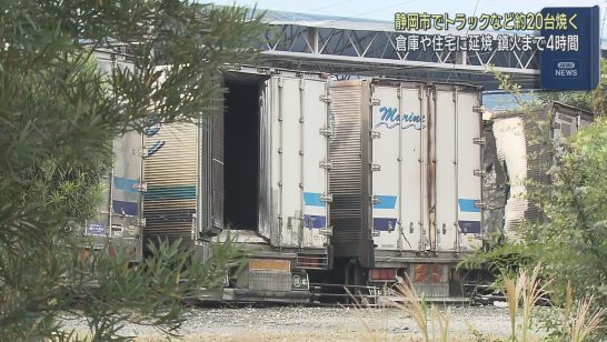 静岡市清水区の運送会社駐車場でトラックなどおよそ20台が燃える火事 倉庫や住宅に...
