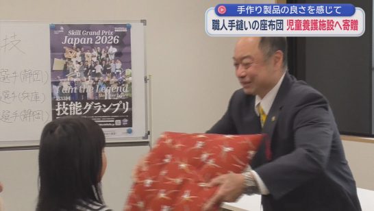 職人が手縫いの座布団を児童養護施設に贈呈 静岡市