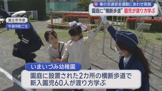 手を上げて左右を確認してから横断歩道を渡りましょう! 静岡・富士市の幼稚園で、新...