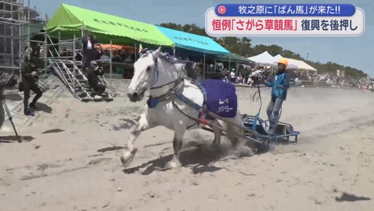 ばん馬「ハクウンリュー号」の雄大な走りで竜巻被害から復興へ~さがら草競馬 静岡・...
